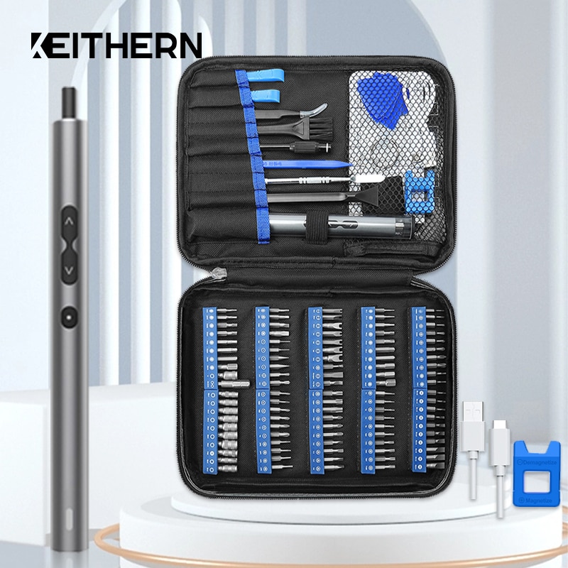 KEITHERN Electric Screwdriver Precision Set Strong Magnetic S2 Steel Bit Large Capacity Power Screw Tool Driver For Xiaomi Phone